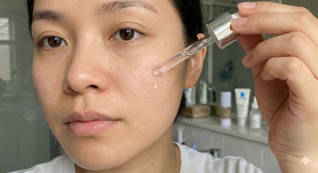 Je ziet het overal op TikTok en Instagram: influencers die het glazen pipetje van hun serum direct tegen hun wang drukken voor dat perfecte “drip” shot.
