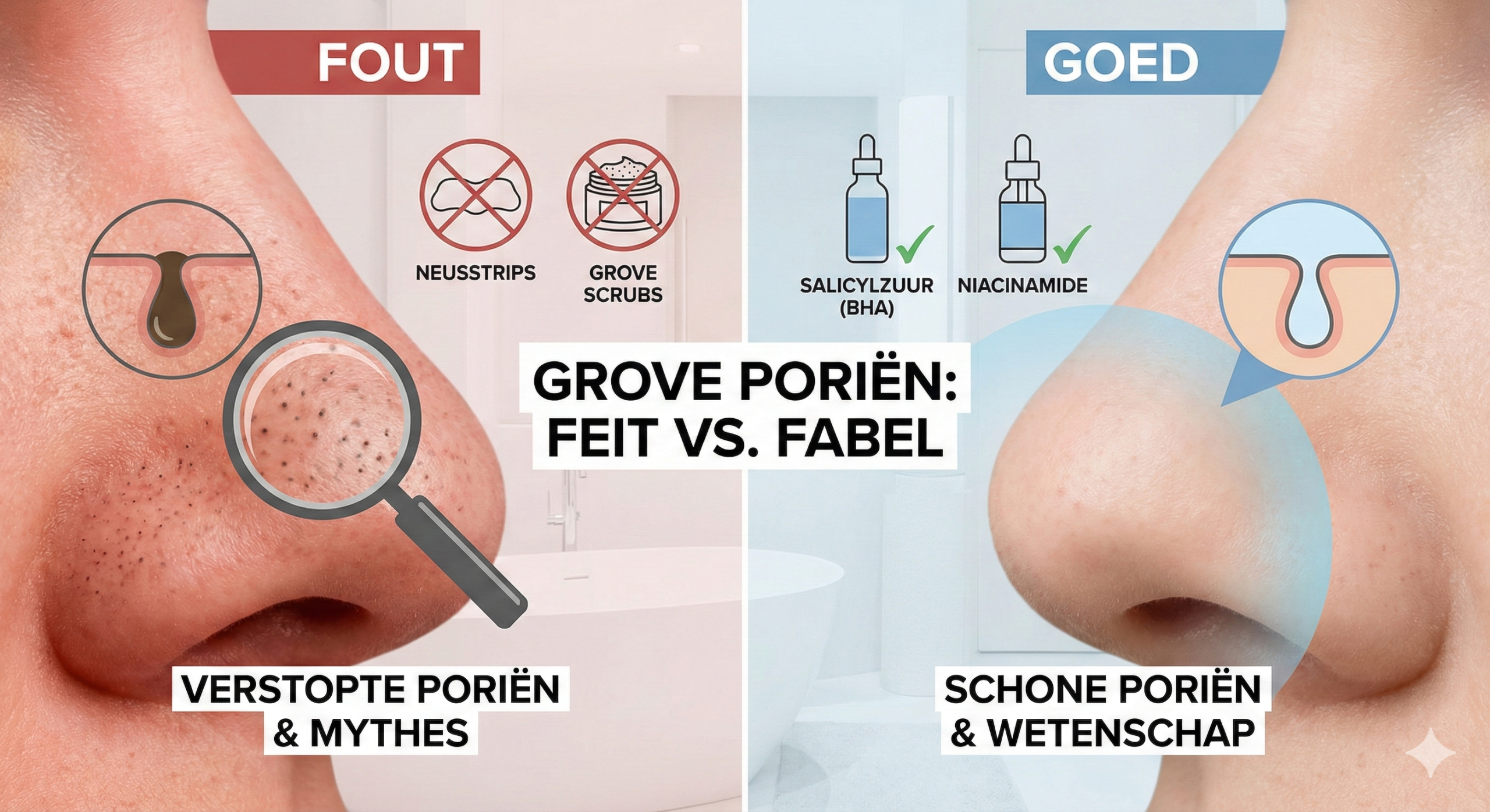 In deze gids leggen we de biologie van je poriën uit. We stoppen met het “leegknijpen” en focussen op ingrediënten die de poriën schoonhouden en optisch verkleinen, zoals Salicylzuur en Niacinamide.